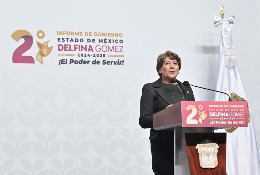 Toluca, Estado de México. La gobernadora Delfina Gómez Álvarez presentó su Segundo Informe de Gobierno en el Teatro Morelos, acompañada por representantes de los tres poderes, autoridades federales, estatales y municipales, así como legisladores y representantes de la sociedad civil.