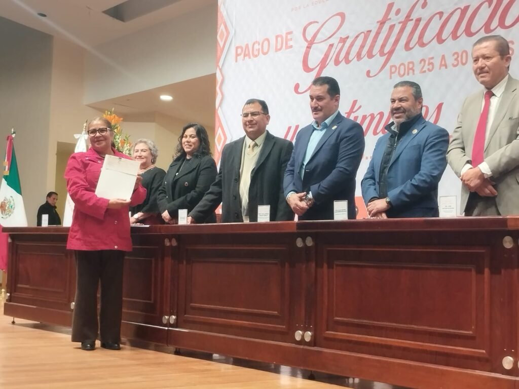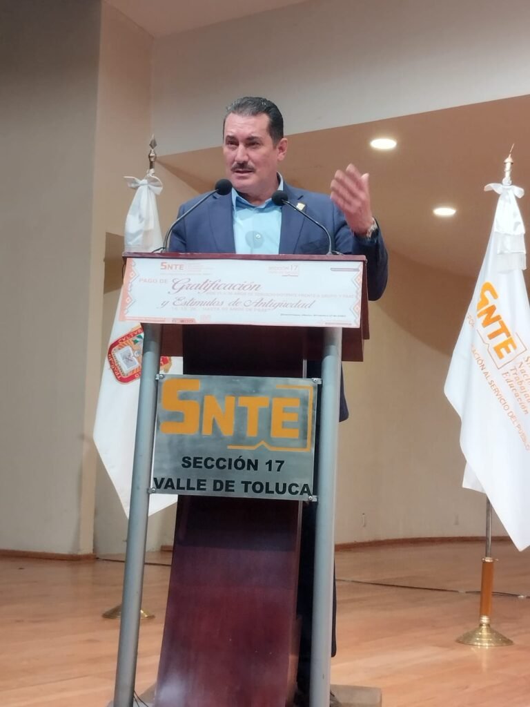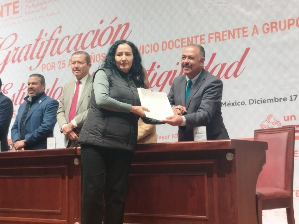 Zinacantepec, Estado de México. En un acto de reconocimiento a la trayectoria y compromiso del personal educativo, la Sección 17 del Sindicato Nacional de Trabajadores de la Educación (SNTE), del Valle de Toluca, que lidera José Alfredo Geraldo Benoit, realizó la entrega de gratificaciones a docentes frente agrupo y Personal de Apoyo y Asistencia a la Educación (PAAE) por 25 a 30 años de servicio; así como estímulos de Antigüedad a PAAE por 10 hasta 50 años de labor.