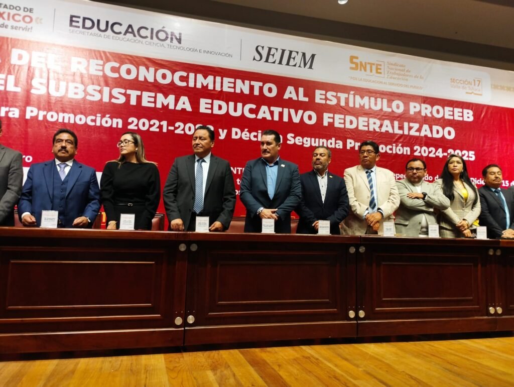 Toluca, Estado de México. Con un llamado a la unidad y a la defensa de los derechos laborales del magisterio, la Sección 17 del SNTE Valle de Toluca encabezó la entrega del Programa de Estímulo Económico y Reconocimiento al Personal Docente y Directivo de Educación Básica (PROEEB), correspondiente a la décima primera promoción 2021-2022 y décima segunda promoción 2024-2025, dirigido a educadores del subsistema federalizado.