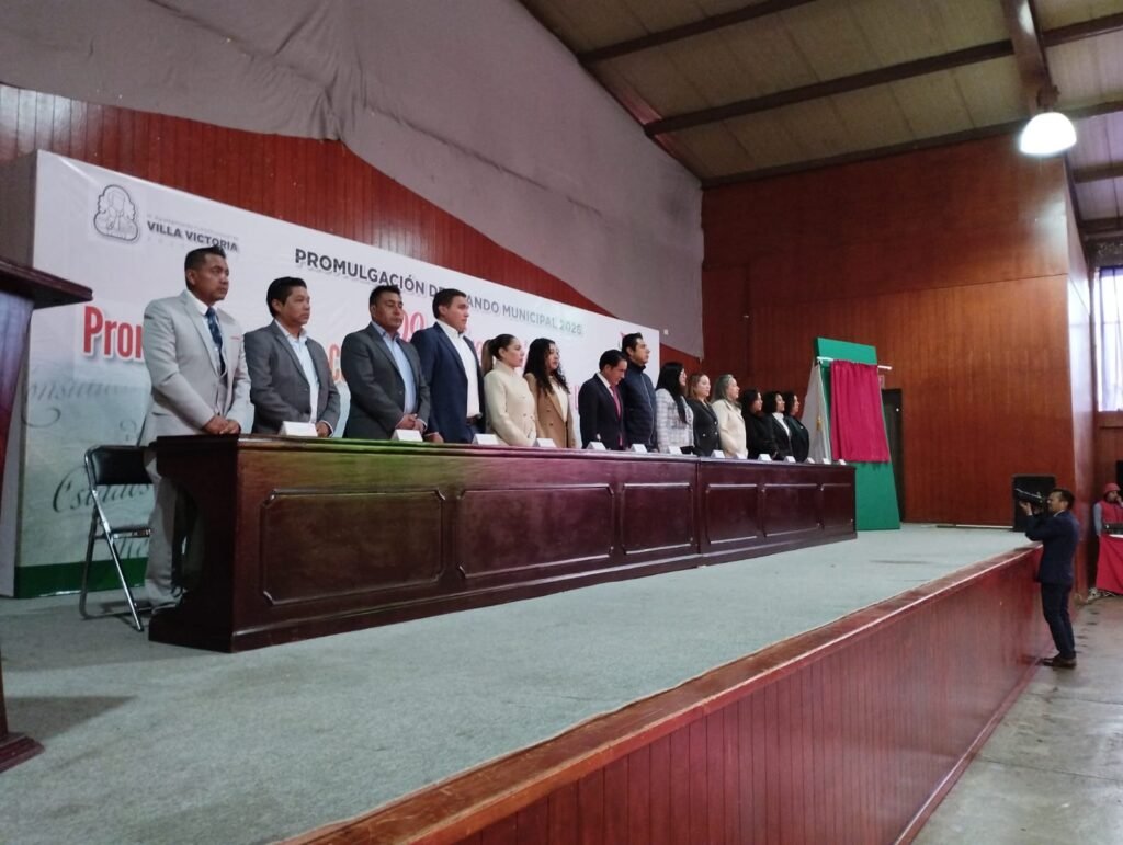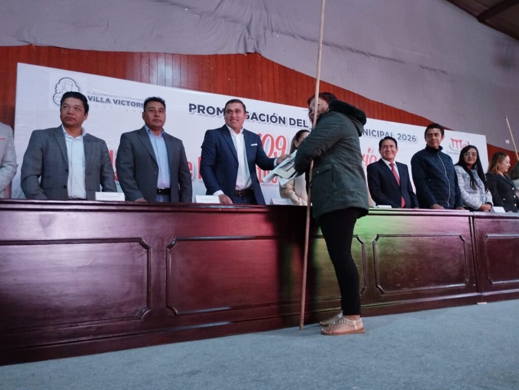 Asimismo, expresó su reconocimiento al Cabildo de Villa Victoria, por aprobar y promulgar el Bando Municipal 2026, que regula la organización política y administrativa del municipio, así como la convivencia social, en un ambiente armónico, de paz y respeto al Estado de Derecho.
