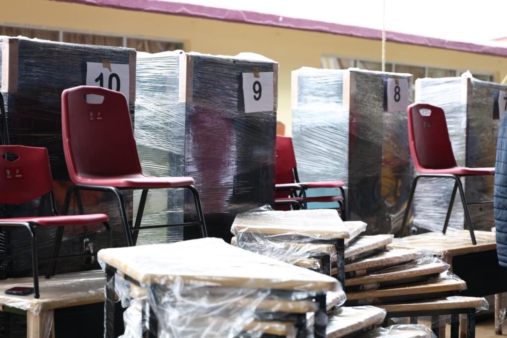 Entre ellos, destacan un escritorio para docente, 26 mesas rectangulares, una mesa unitaria, un pizarrón y sillas.