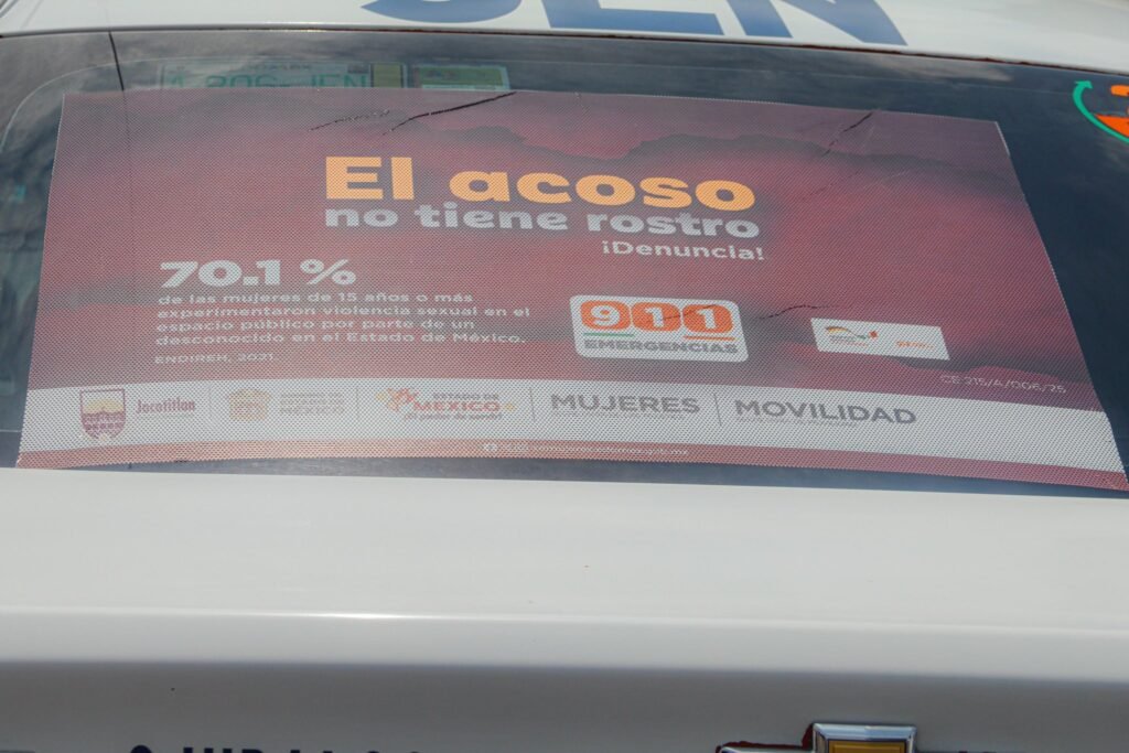 La actividad consistió en la colocación de mensajes adhesivos en unidades de taxi del municipio, con el objetivo de visibilizar y sensibilizar sobre la problemática del acoso, especialmente hacia mujeres y niñas.