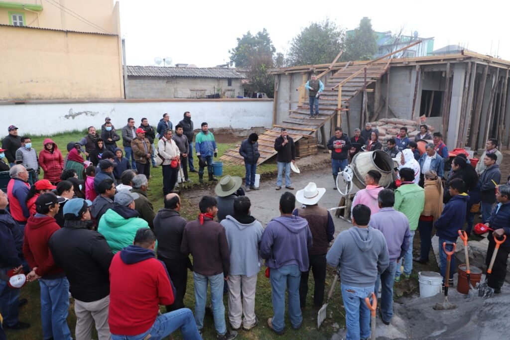 Desde las primeras horas del día, el alcalde inició actividades en San Diego del Cerrito, donde participó en la faena comunitaria para el colado de losa en los salones de usos múltiples de la iglesia católica, una obra realizada con materiales proporcionados por el Ayuntamiento y mano de obra de los habitantes.