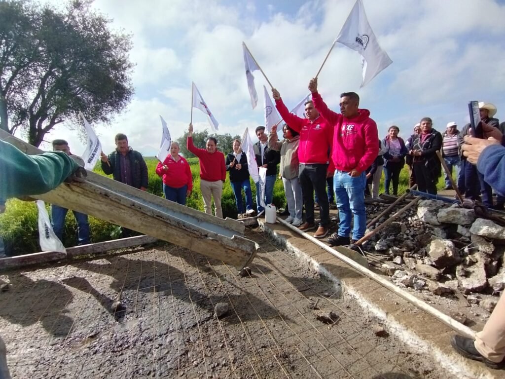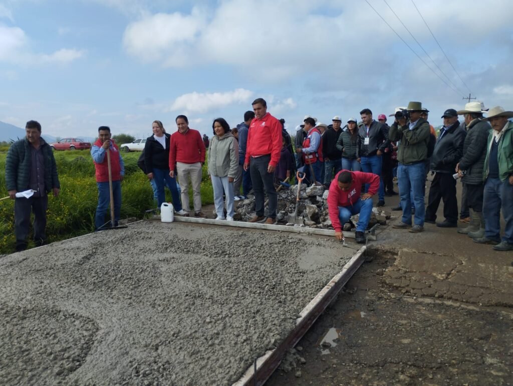 La gira continuó en San Agustín Altamirano Primera Sección, paraje El Cuatro, donde arrancaron los trabajos de pavimentación con concreto hidráulico, obra financiada con recursos del FAISMUN (Ramo 33); ahí, el presidente municipal señaló que el objetivo es continuar con la ampliación de pavimento para tener una vía digna.