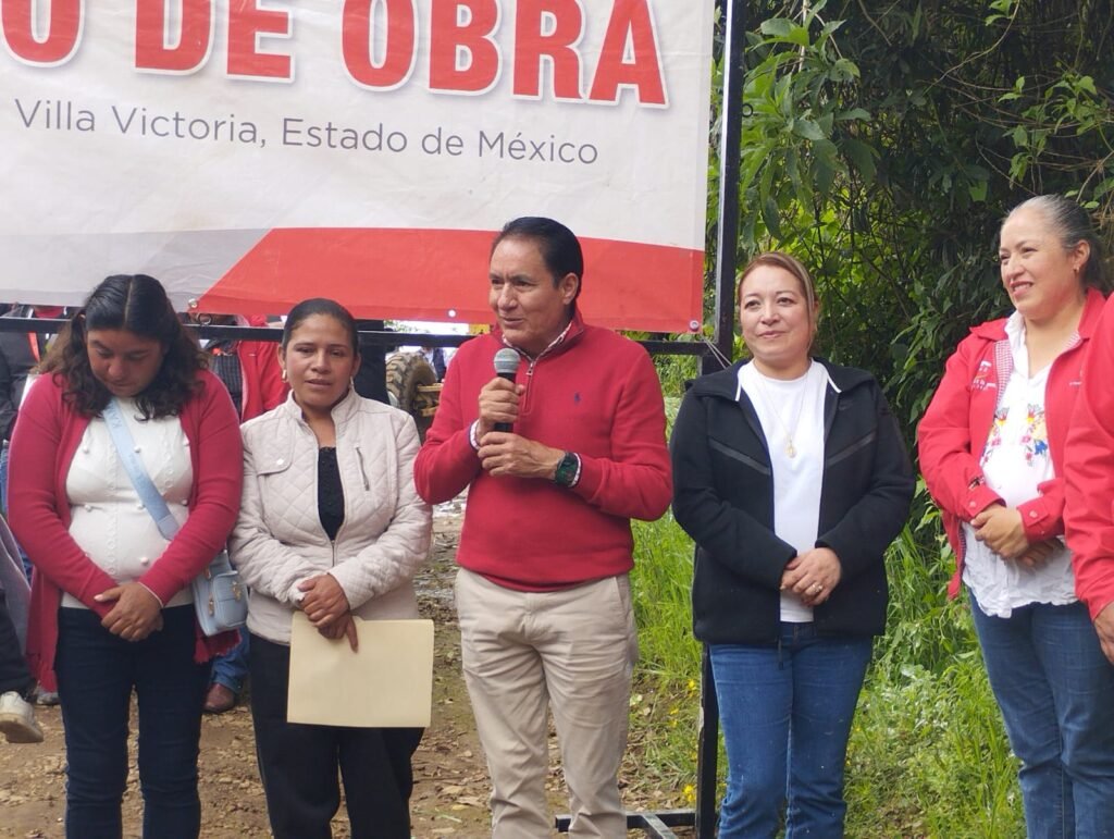 Villa Victoria, Estado de México. En gira de trabajo, el presidente municipal Mario Santana Carbajal, acompañado del síndico, regidoras, regidores, el secretario del Ayuntamiento, representantes del gobierno estatal, autoridades auxiliares y habitantes, encabezó el inicio de ocho encementados y la construcción de un tanque elevado, en beneficio de diversas comunidades.