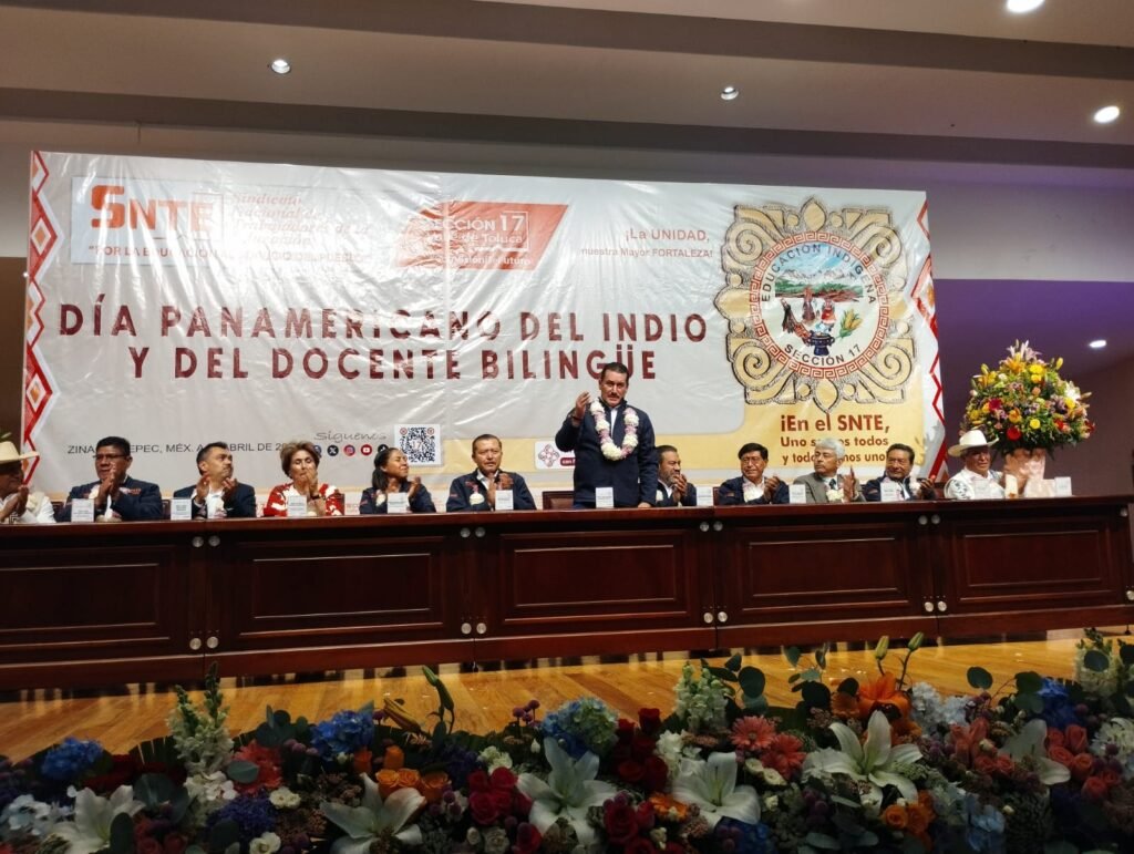 Zinacantepec, Estado de México. Bajo la premisa de que «la unidad es la base para avanzar firmes», la Sección 17 del Sindicato Nacional de Trabajadores de la Educación (SNTE), encabezada por su secretario general, José Alfredo Geraldo Benoit, conmemoró el Día Panamericano del Indio y del Docente Bilingüe, donde refirmó su compromiso con la defensa de los derechos laborales y la preservación de las raíces culturales mexiquenses.